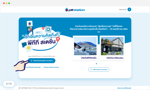 คลิกที่ปุ่ม “เข้าร่วมกิจกรรมด้วย Facebook” เพื่อเริ่มกิจกรรม