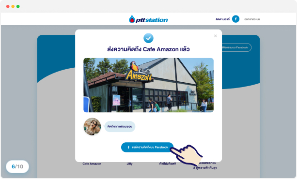หลังจากส่งความคิดถึงแล้ว ให้คลิกที่ปุ่ม “แชร์ความคิดถึง” เพื่อแชร์ลงบน Facebook ของคุณ